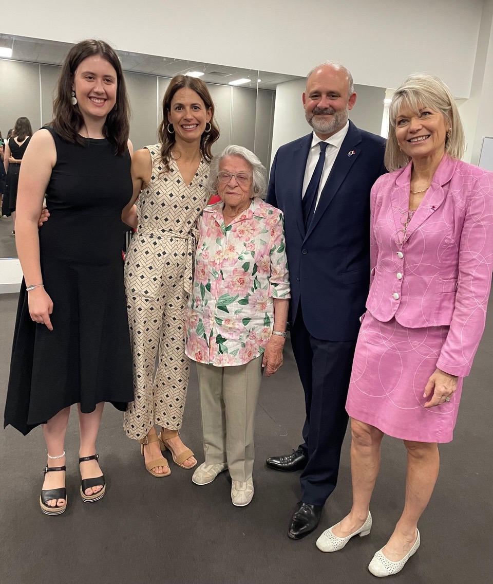 L-R: Naya Seelig-Schnattner, Lucie Dickens, Esther Wise, the French Ambassador to Australia,