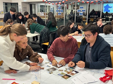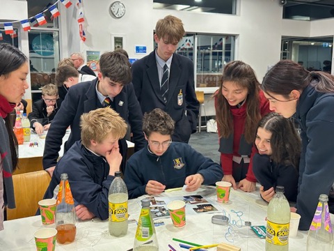 Students, seated in tables of eight, met for the first time and enthusiastically used their French skills to take part in the activities. The evening was a great success, with plenty of smiles and a lively, friendly atmosphere.