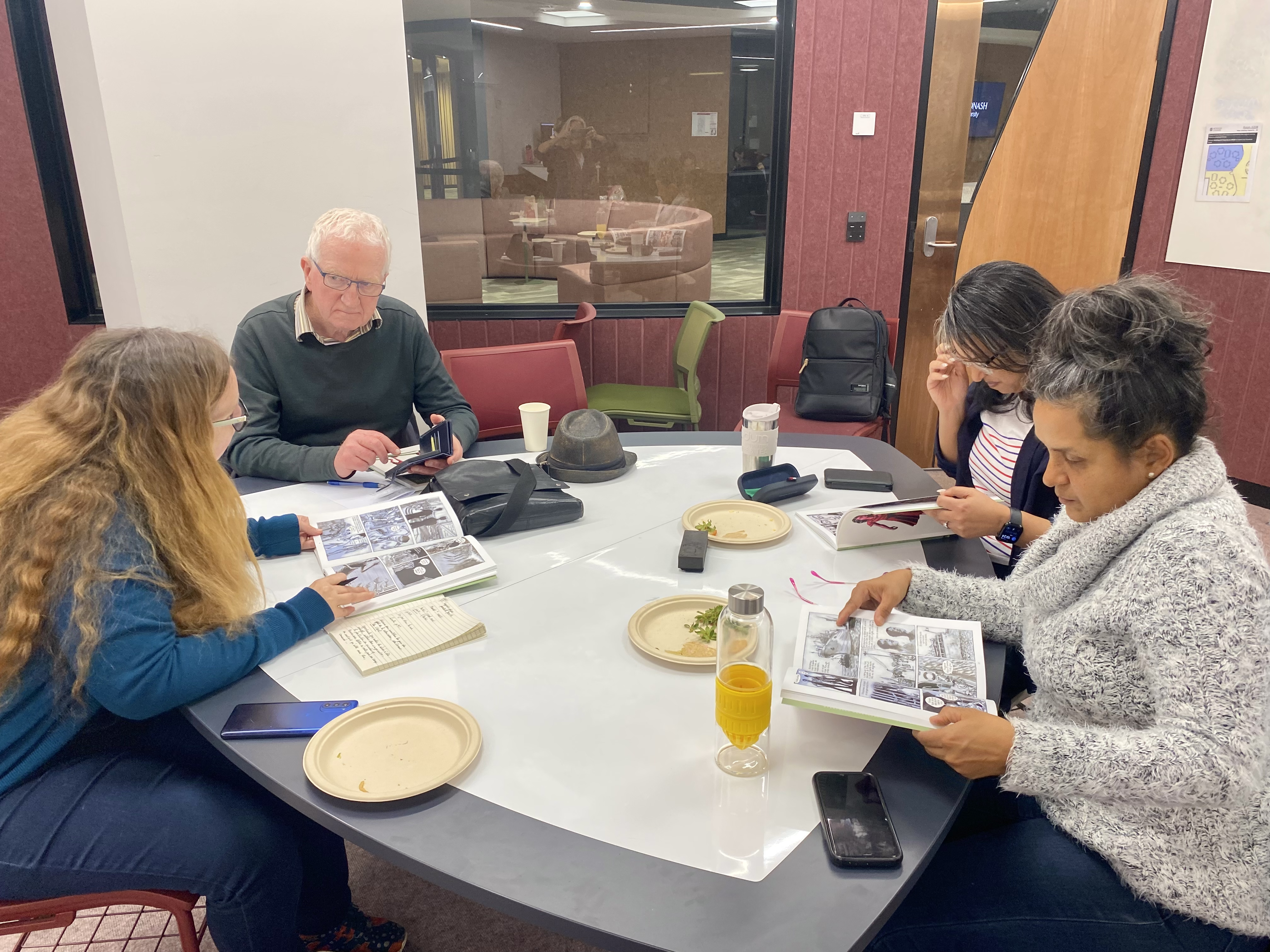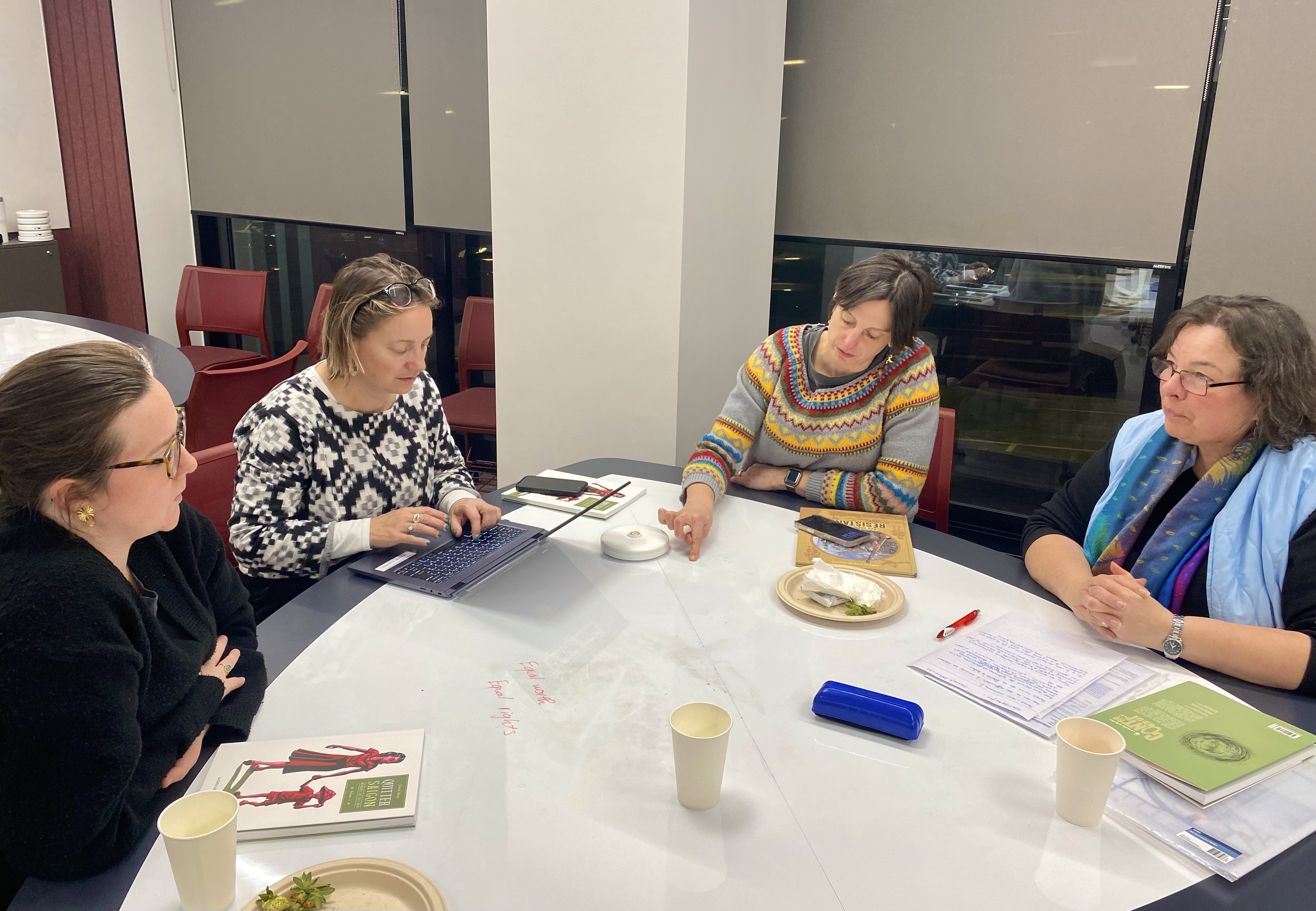 Ce furent des moments empreints de bonne humeur, d'échanges entre professeurs des écoles, d'éléments d'analyse du livre et de son contexte, merci au Dr Charlotte MacKay, et du développement de ressources pratiques pour nos élèves, tout cela baigné dans la dégustation de fromages et autres gâteries.