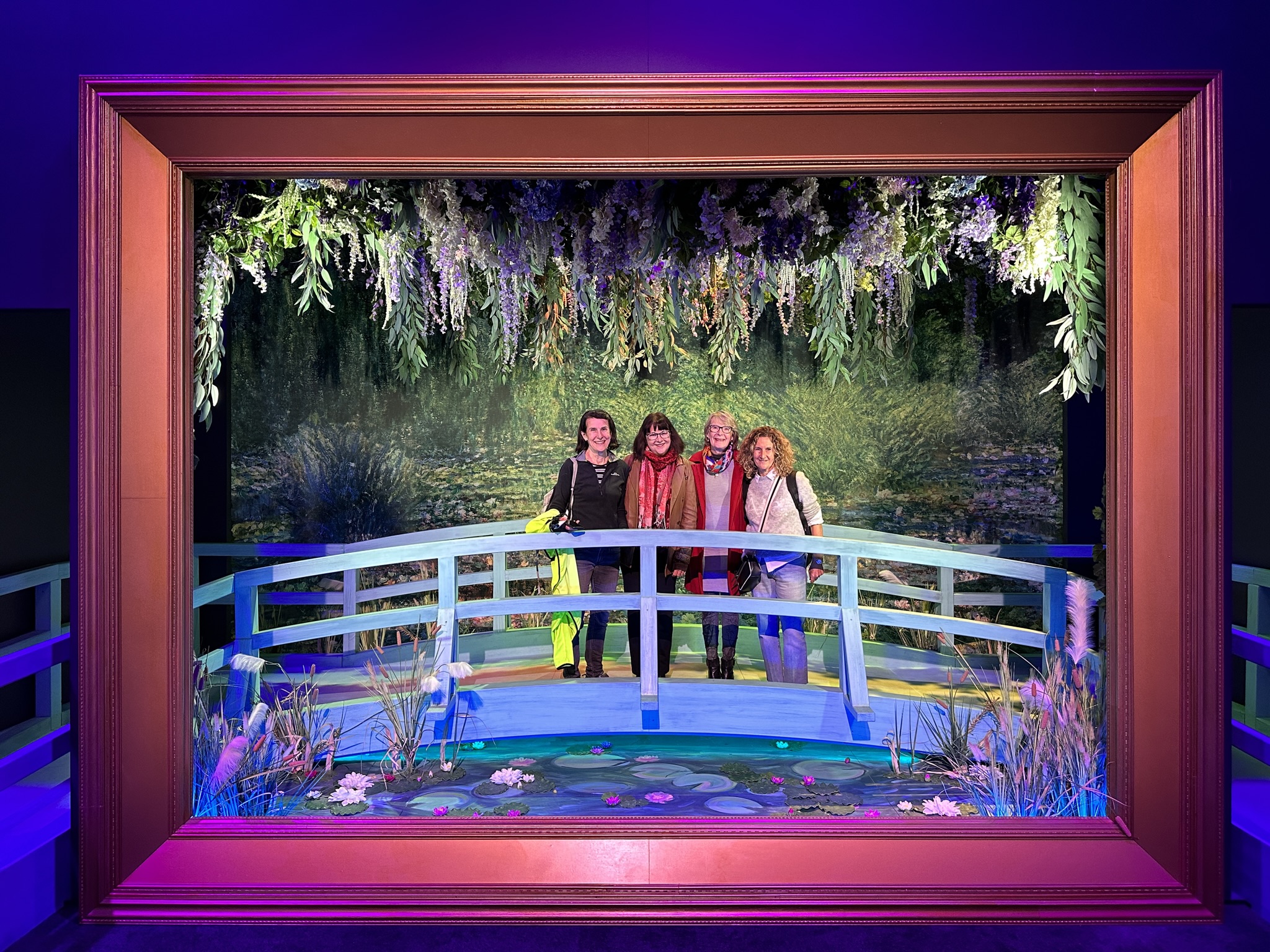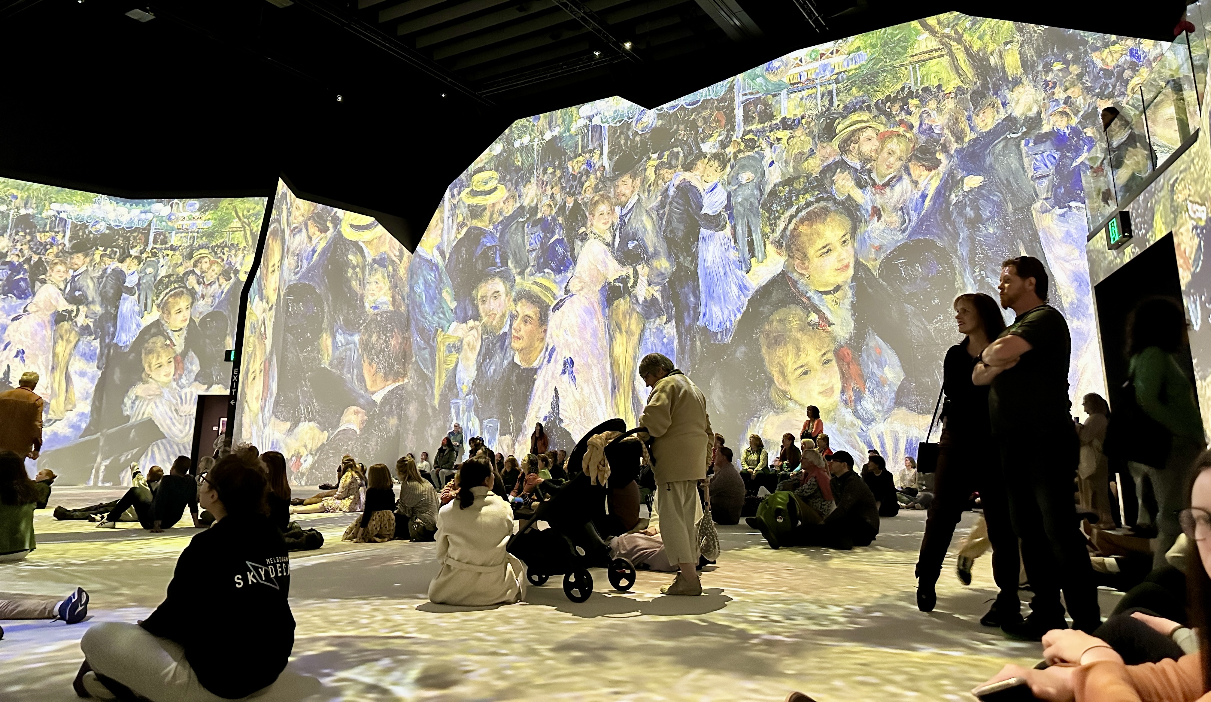 After a chilly start to the morning of Sunday 30 April, 40 of us (well really,39 plus 1 dog) gathered outside Door 17 at The Lume Melbourne to meet Monet and Friends and experience their adventure into French Impressionism featuring works by Manet, Monet, Renoir, Degas, Morisot, Cassatt, Sisley, Signac, Cézanne, Caillebotte, Lautrec… sights, sounds, tastes and aromas combining to offer a unique chance to enter into their world and to see art in a new light, where light was such an integral component of their works.