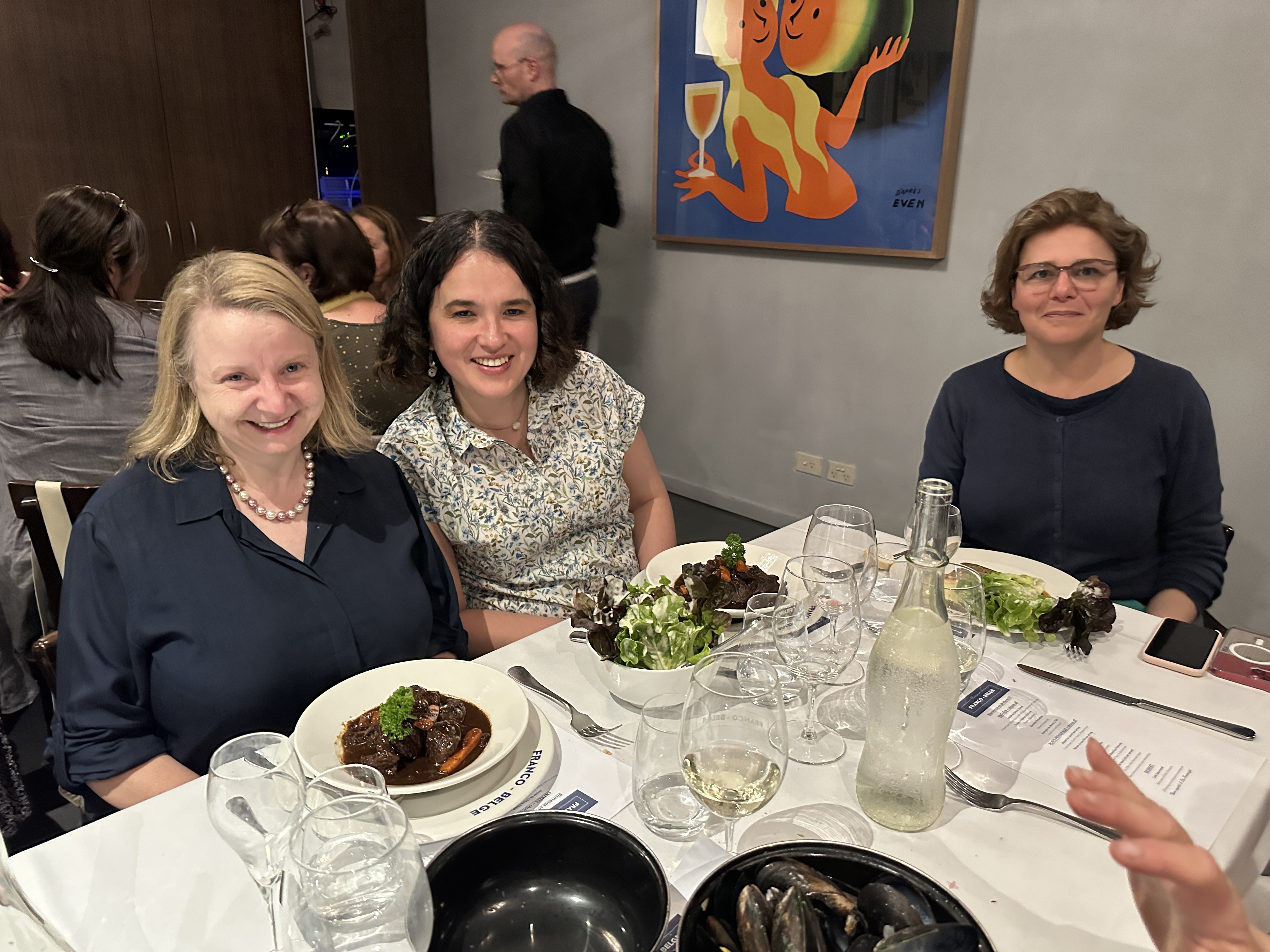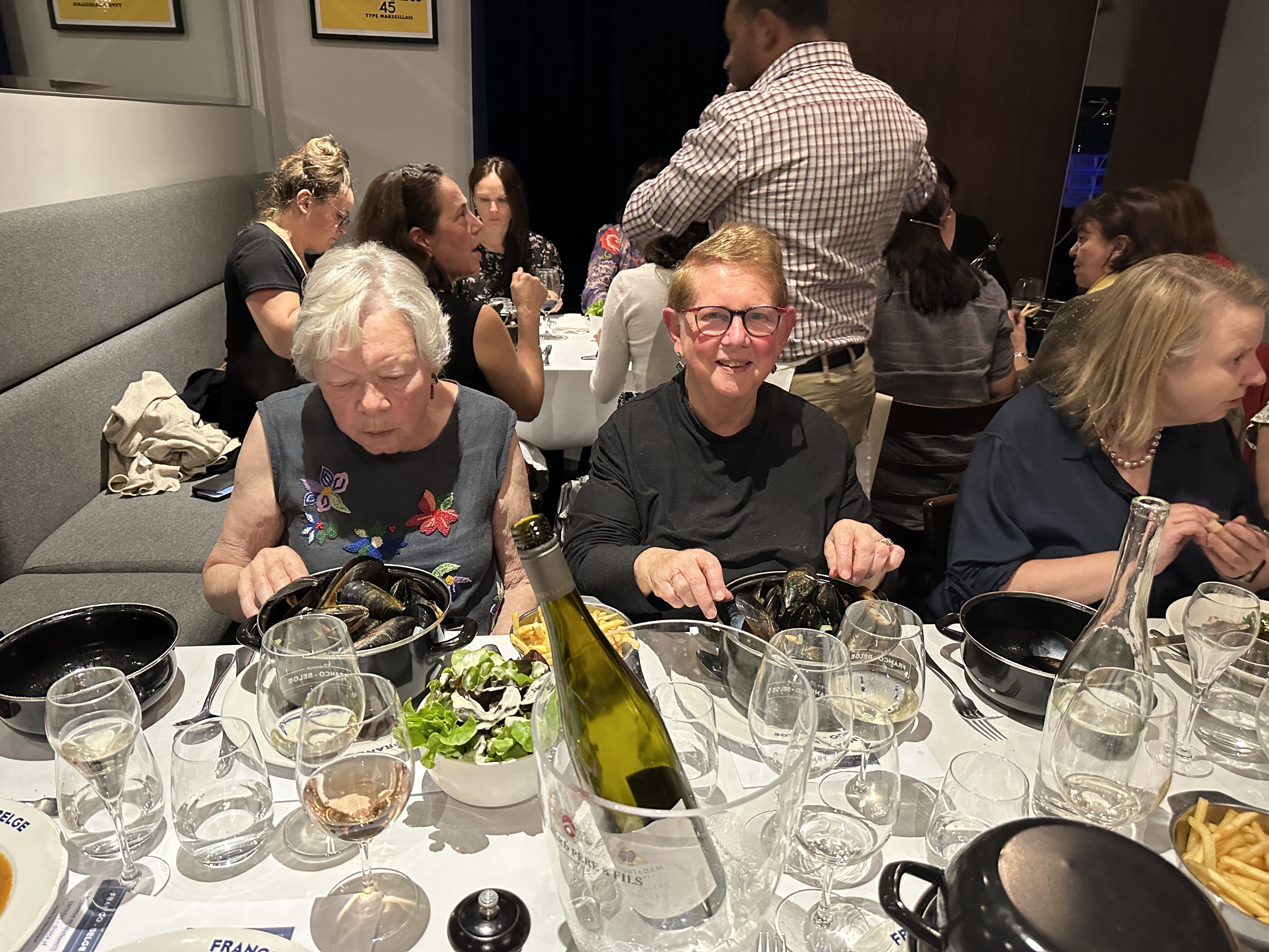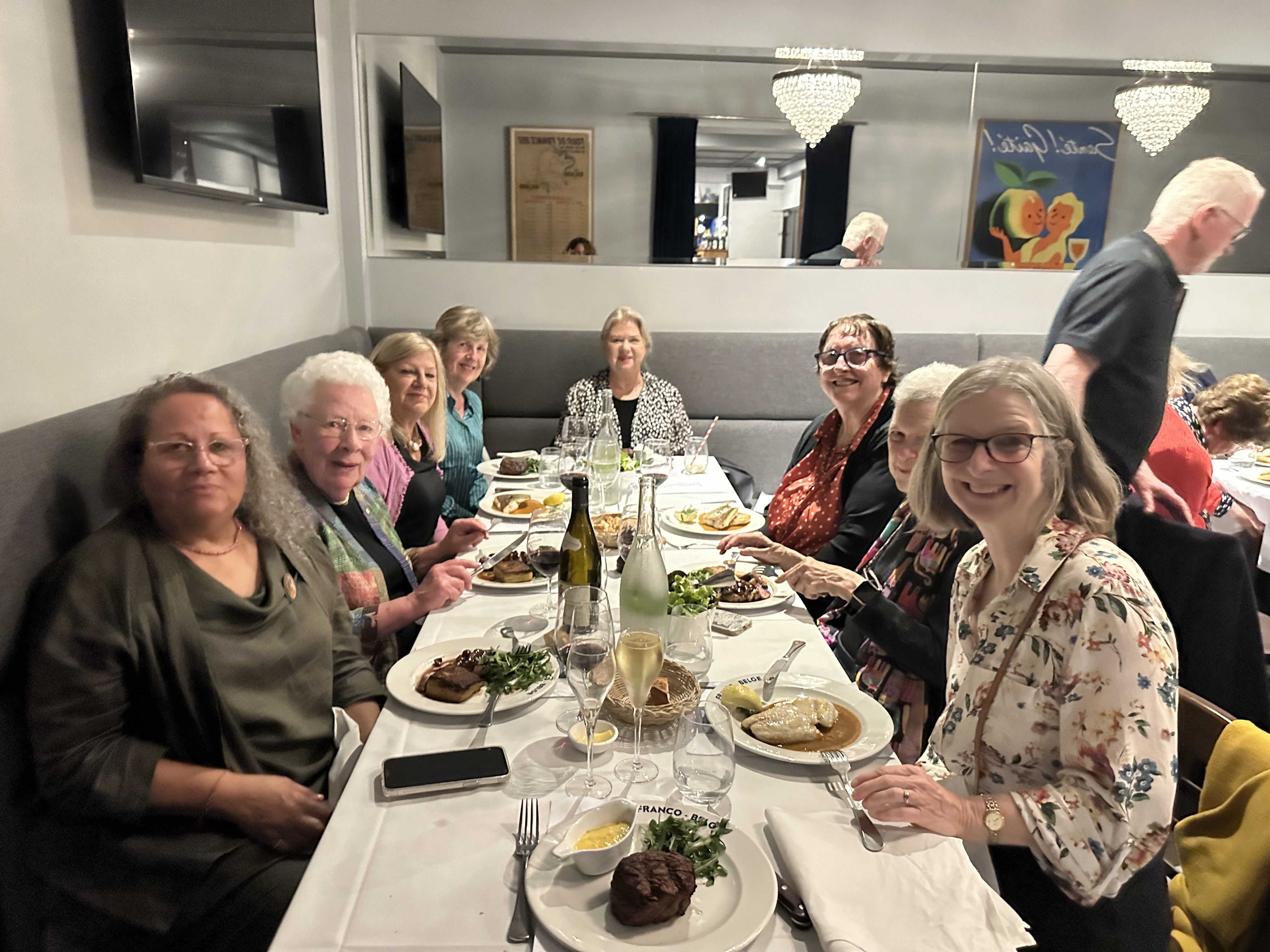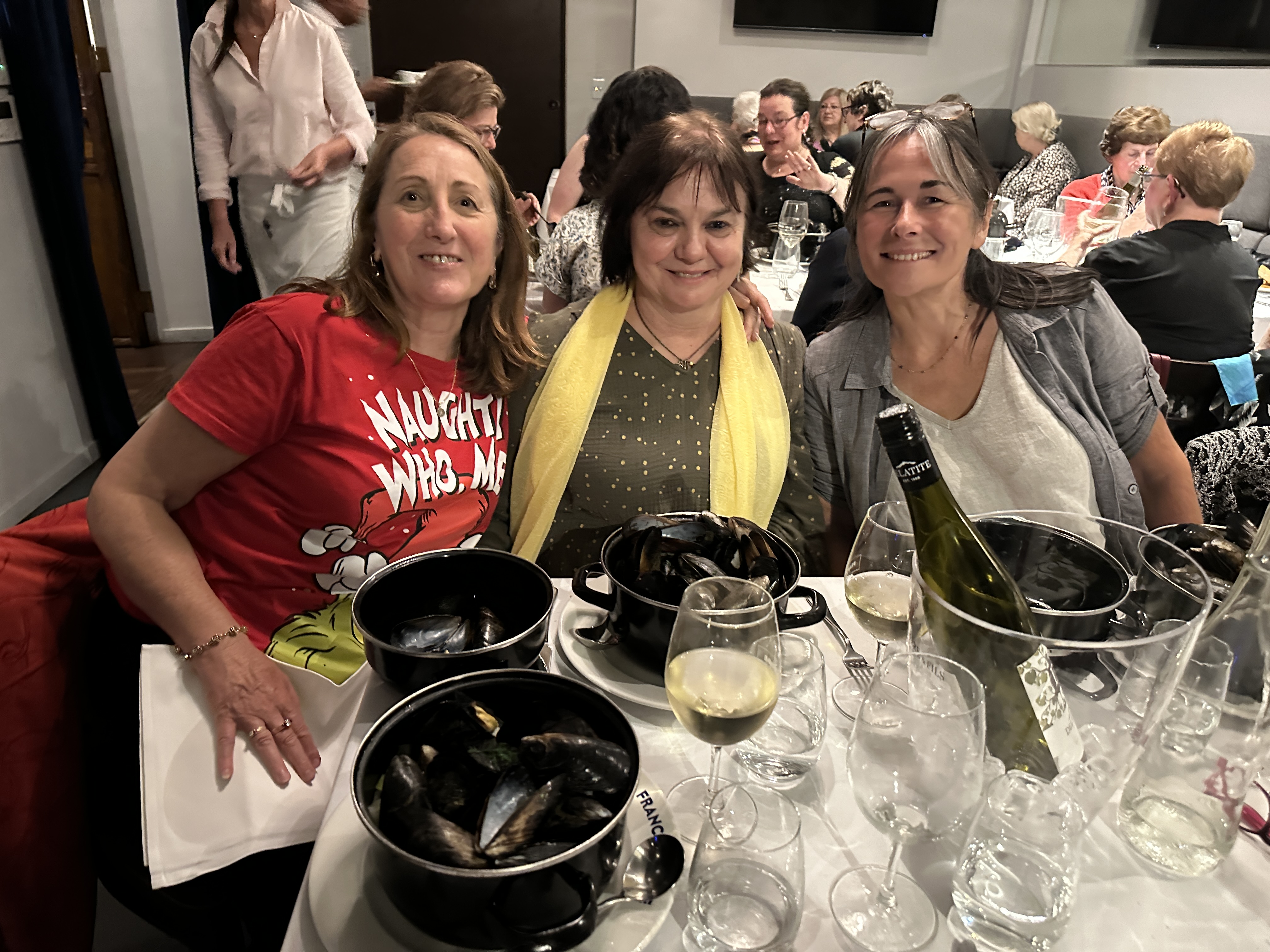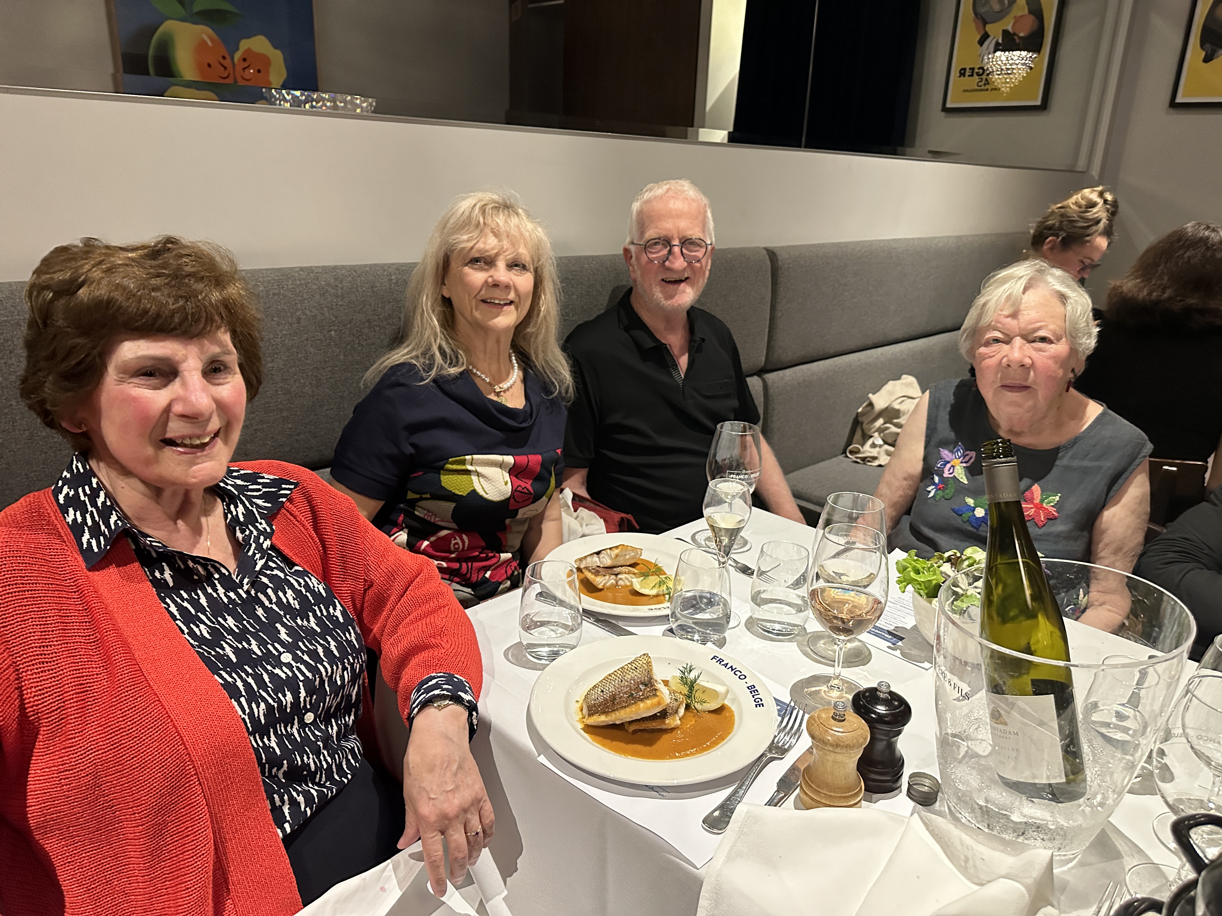 On Friday 1 December, 29 AFTV members celebrated the end of year with our Francophone Soirée at the Brasserie Franco Belge in Hawthorn East in their private dining room. We were made most welcome and were provided with plenty of choice from the set menu of dishes representing France and/or Belgium- Salade de Chèvre Chaud, Garnalen (prawn)Kroketten, Escargots au Beurre à l'Ail, Confit de Canard, Carbonnade de Boeuf à la Flamande, Moules Marinières…and ending with a delightful platter of 4 traditional desserts such as Mousse au Chocolat, Isle Flottante, Crême Brûlée…. The staff could not have been more helpful or efficient in serving both food and drinks and the system of guests purchasing either from the bar or paying on receipt of drinks went smoothly.