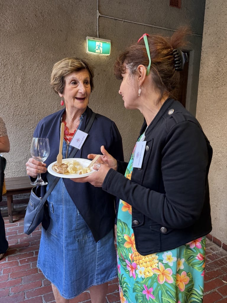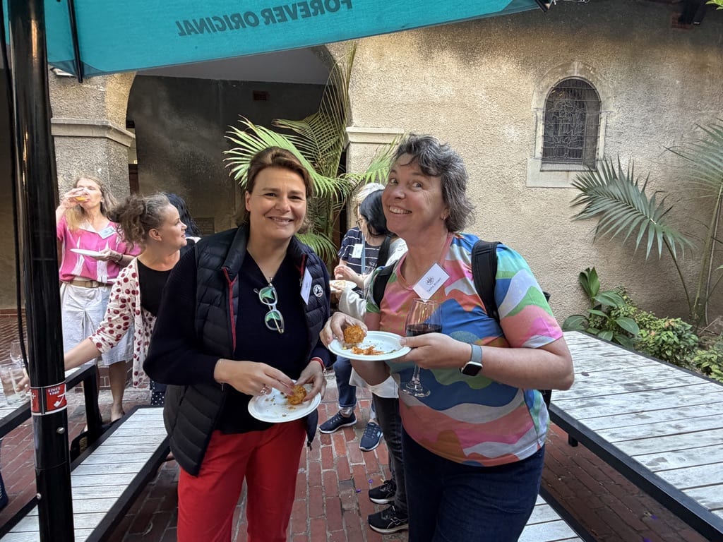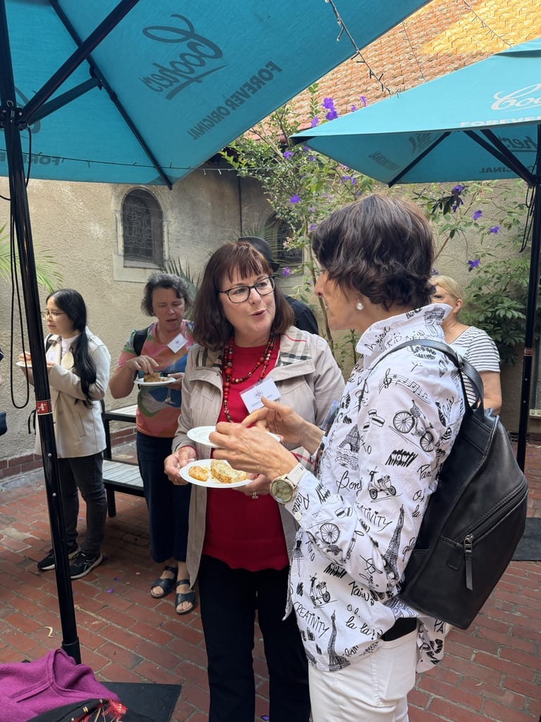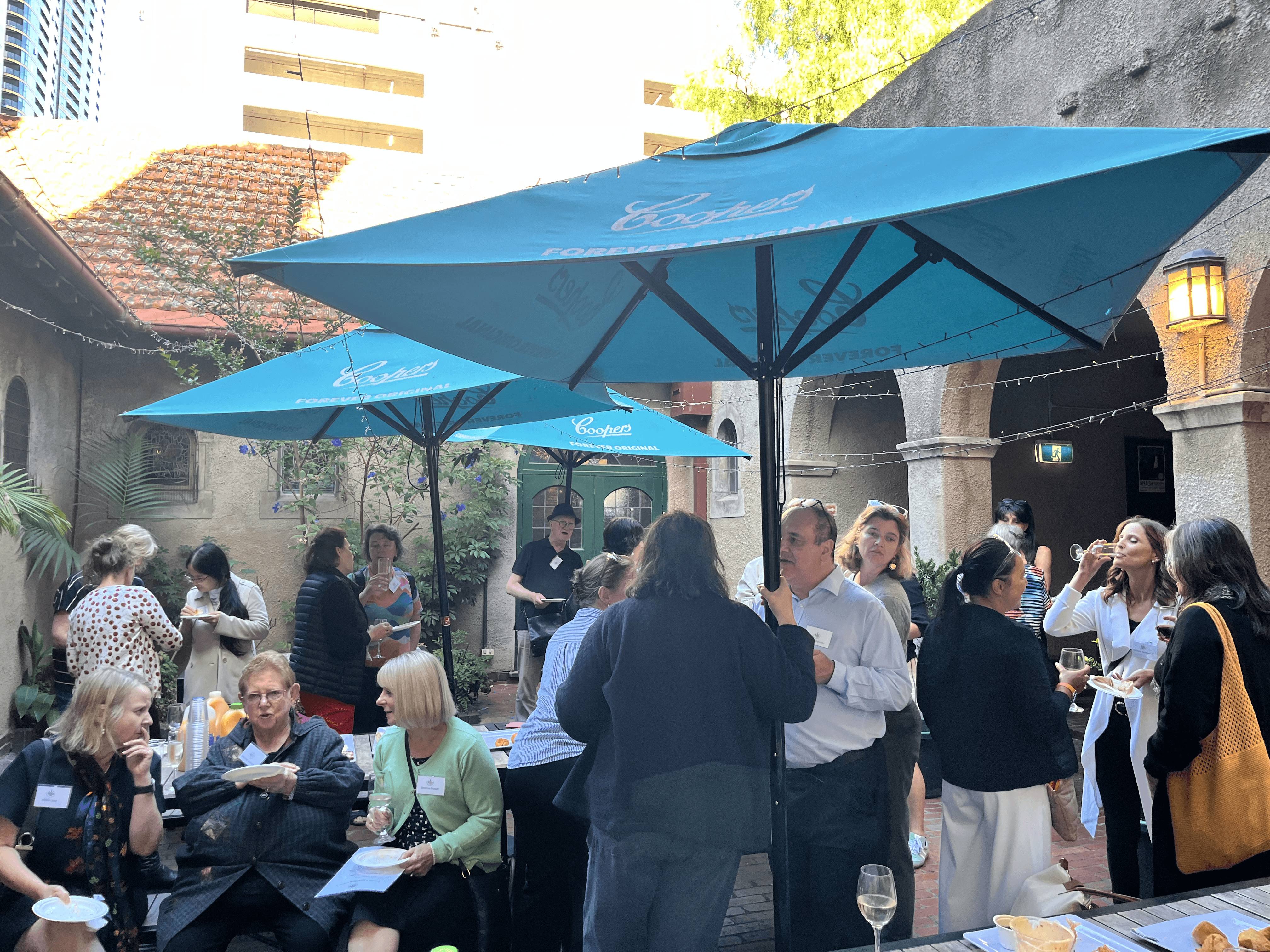with colleagues and meeting new colleagues, sharing a delicious light meal in the beautiful courtyard adjacent to the meeting