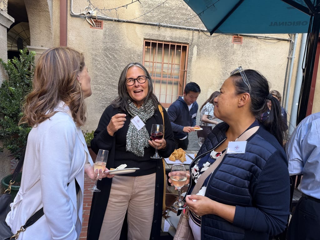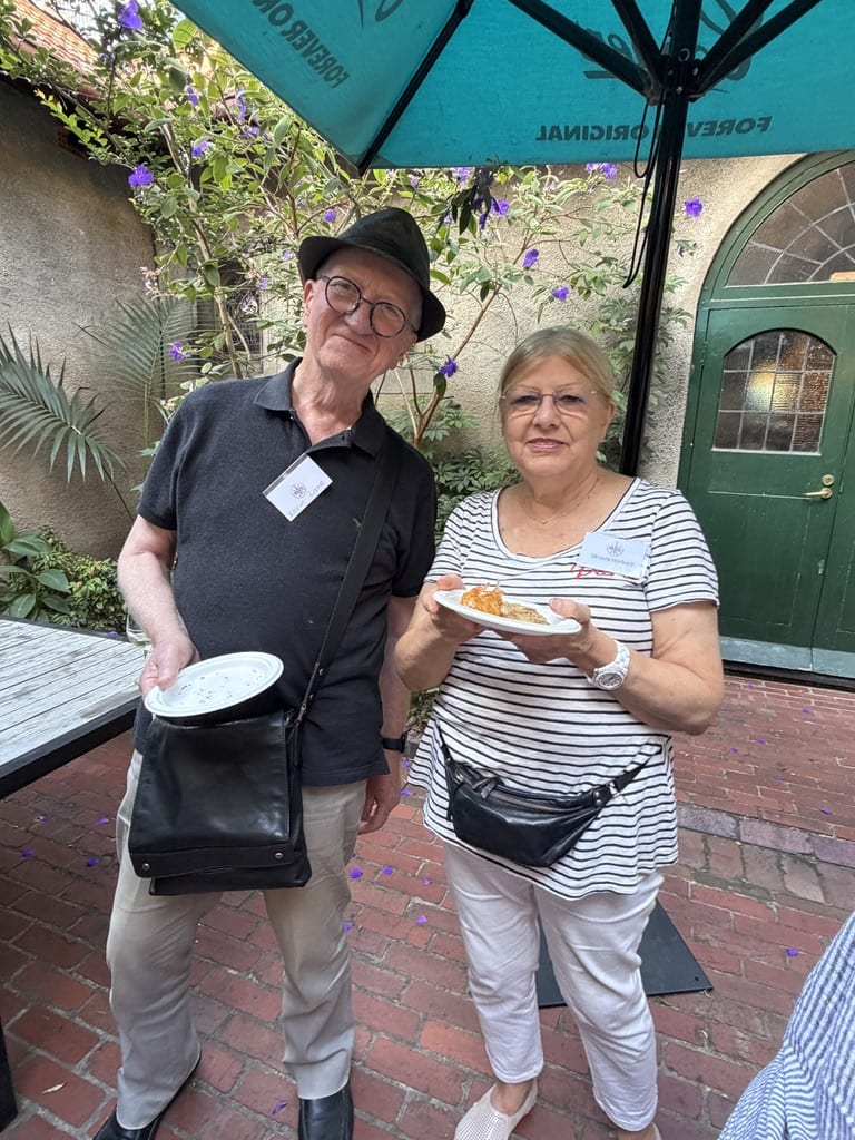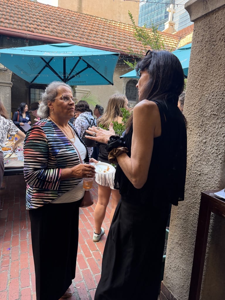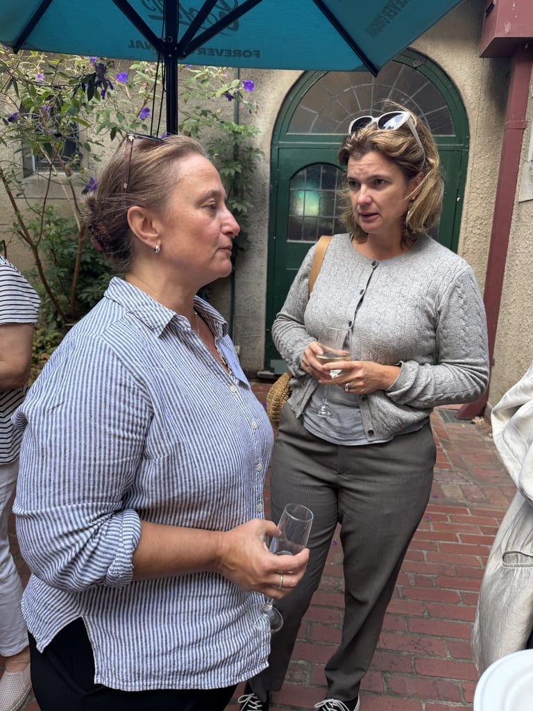 with colleagues and meeting new colleagues, sharing a delicious light meal in the beautiful courtyard adjacent to the meeting