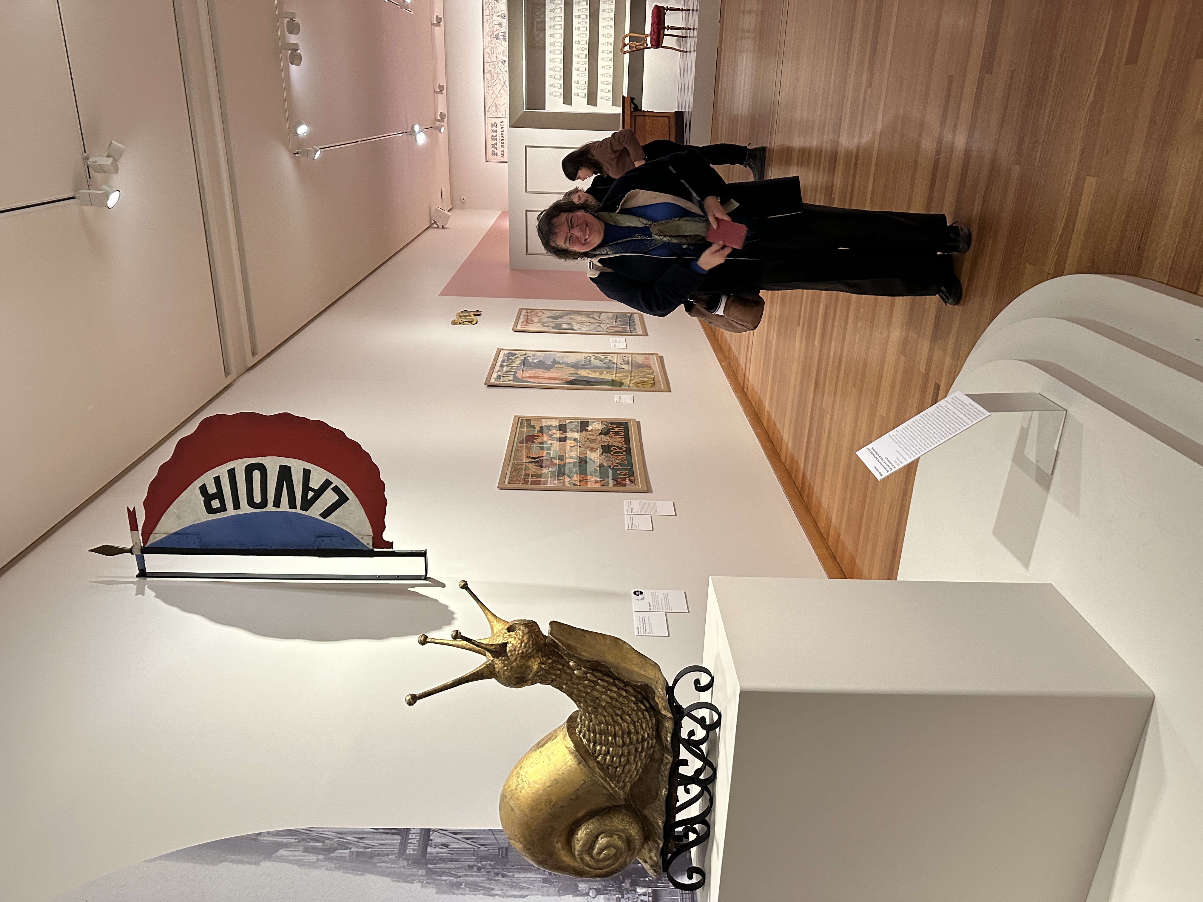 Once entering the exhibition we were able to identify each room, starting with the huge map where many of us spent time identifying places we knew well, then progressing through bustling marketplaces, Parisian Gardens, the Seine where both leisure and industrial development were depicted as well as the first bridge, Le Pont des Arts; other rooms were devoted to the Universal Exhibition, the Eiffel Tower, the bohemian life of Montmartre, the Champs Elysées and the Musée Carnavalet, the source of the wealth of material for this exhibition.