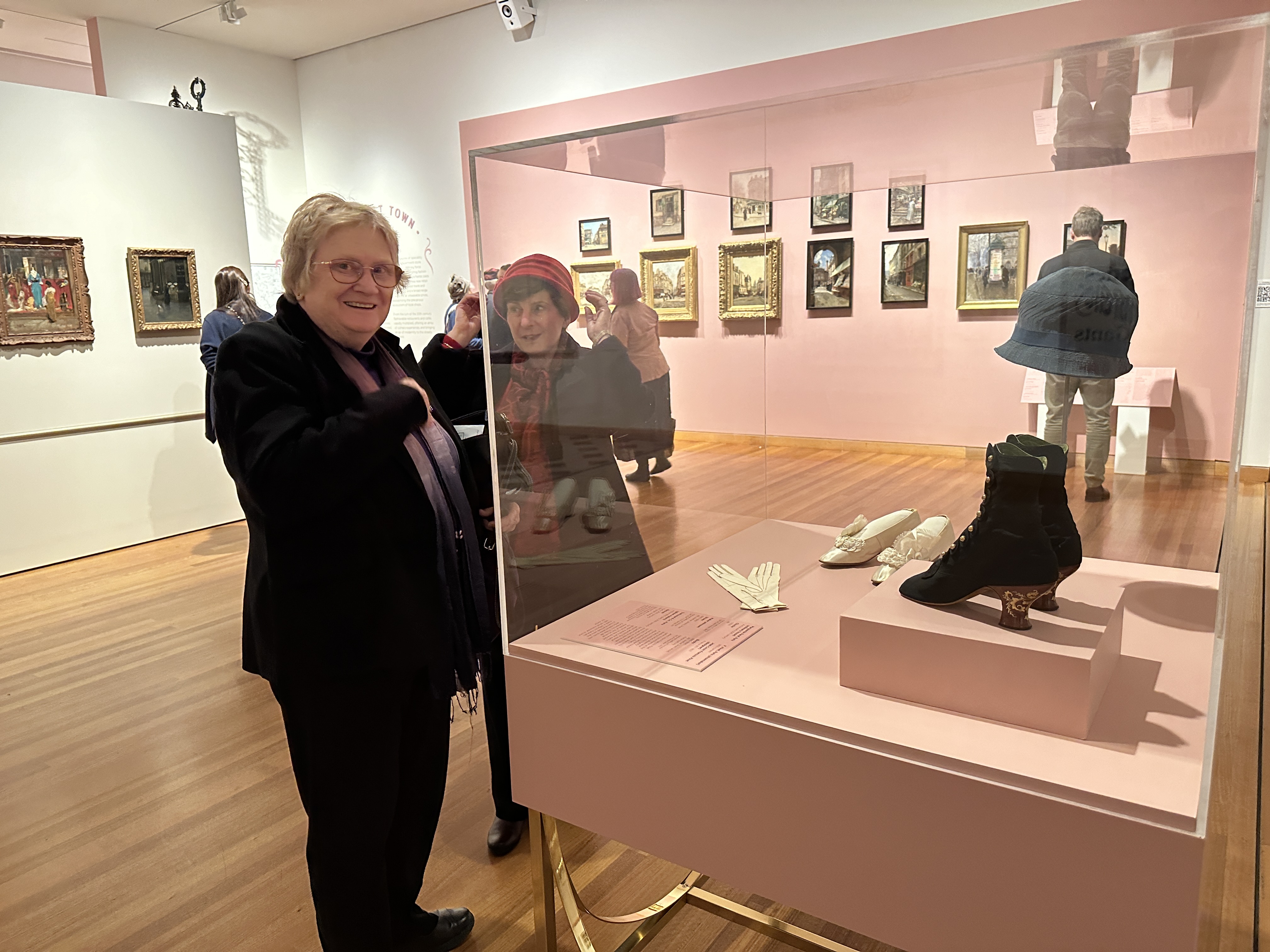 Many of the paintings, particularly those of the Impressionist painter, Jean Béraud, whose depiction of the entry to the Universal Exhibition 1889 was chosen for the BAG's publicity poster, displayed so many aspects of the growth of Paris during this period. Other significant artworks such as shop signs and paintings by Maurice Utrillo and Paul Signac as well as prints and posters by Toulouse-Lautrec and his contemporaries reinforced the story. The clothing and accessories also prompted us to stop to learn more of this period.