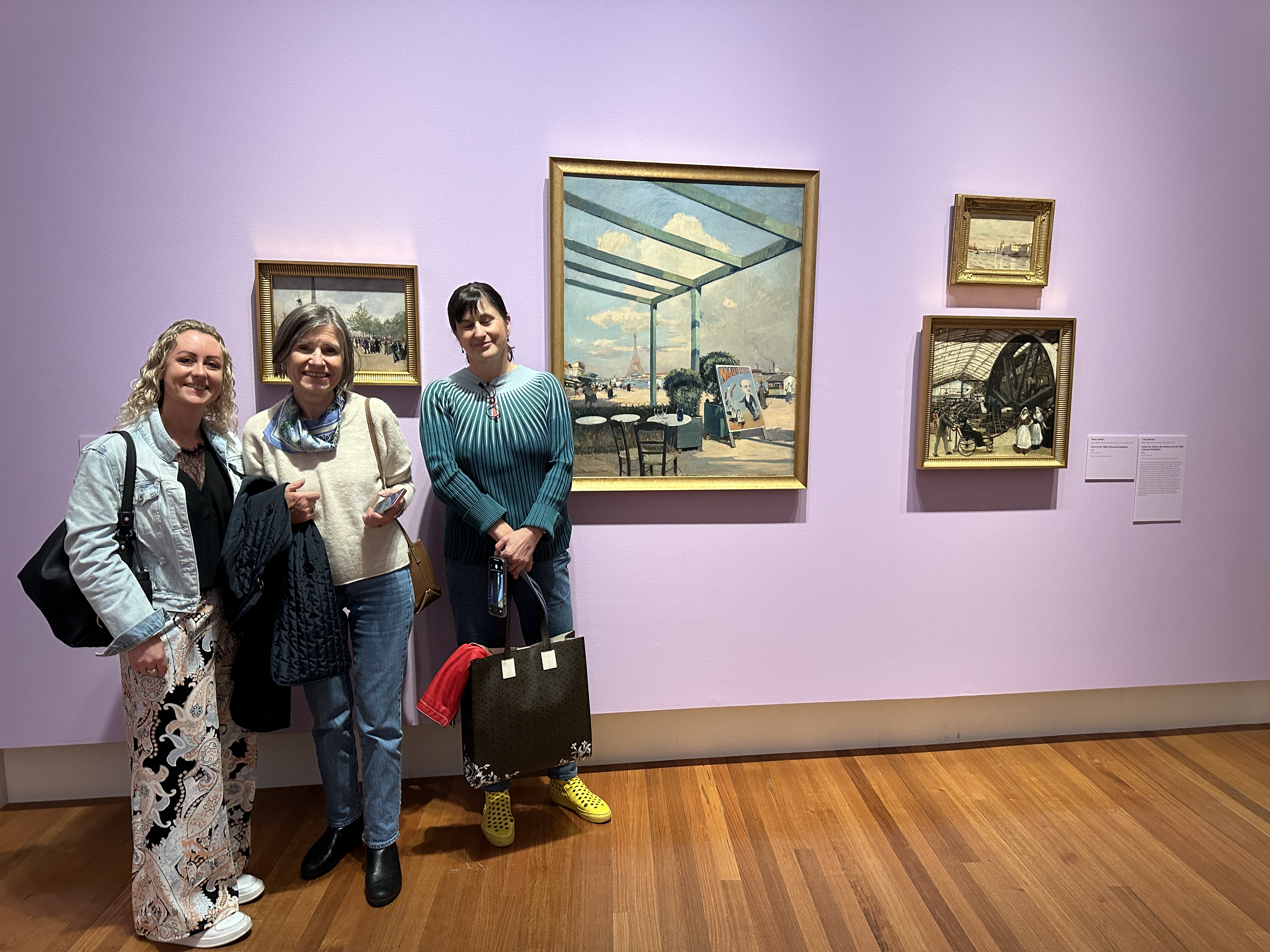 23 AFTV Members and Guests had an early start to arrive in Bendigo for our 3 part excursion- an introductory lecture at the Latrobe Art Institute delivered by Delphine Laboreau-Ormancey, (Tête-à-Tête), On View café's French themed lunch and then of course the exhibition itself. Delphine took us on a journey through the exhibition with accompanying slides to explain the story and development of Paris during La Belle Époque (and a bit beyond) via the 7 themed rooms which enabled and enhanced a smooth and informed visit for all.