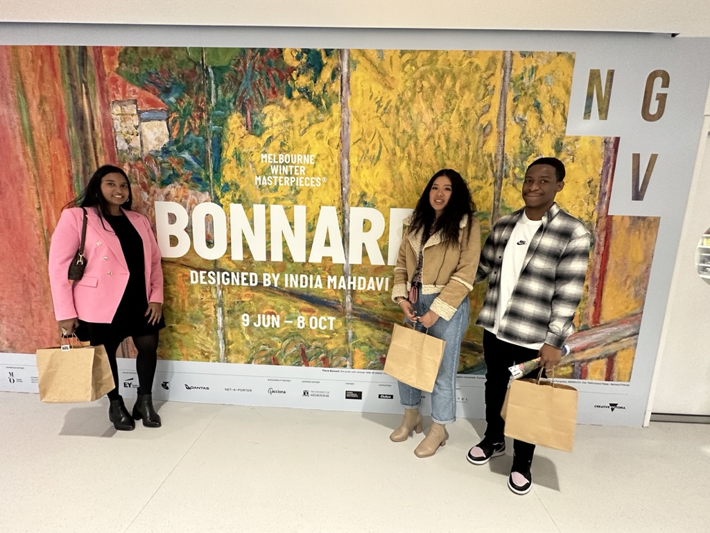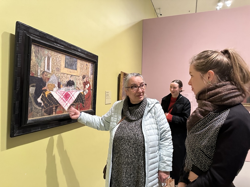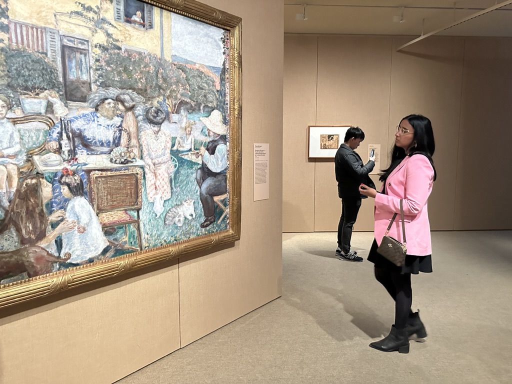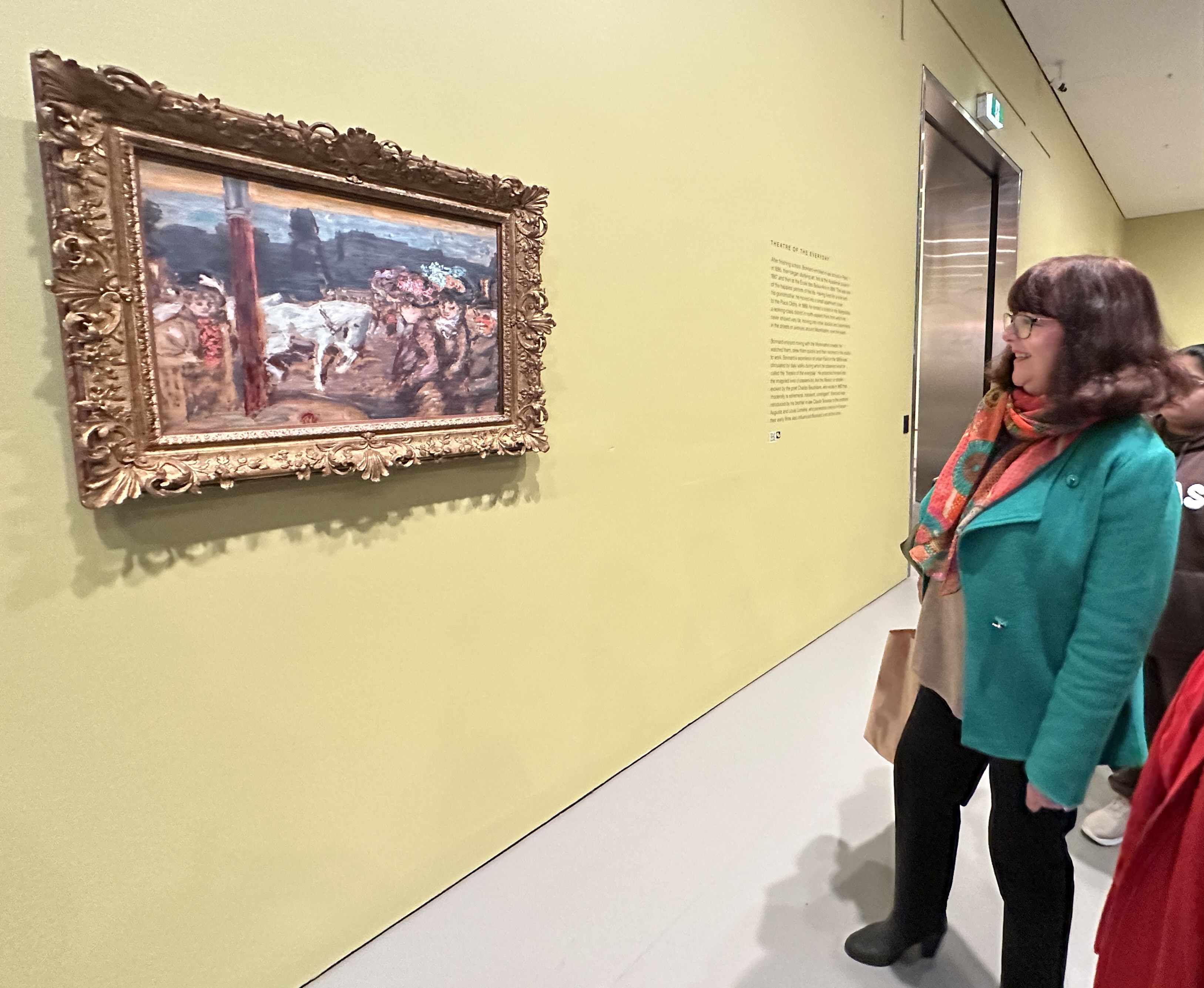 On Sunday 23 July, 47 members and guests gathered at the National Gallery of Victoria to attend 2023’s MELBOURNE WINTER MASTERPIECES EXHIBITION featuring more than 100 works by Pierre Bonnard (1867-1947), celebrated for his iridescent palette depicting intimate domestic interiors, natural landscapes and urban scenes. Renowned for his use of colour to convey emotions- such a contrast to this grey winter morning- Bonnard certainly brightened our day and mood as we journeyed from his earlier works recording Parisian street life, publicity posters, puppets and the infamous theatrical production, Ubu Roi, to the warmth of Le Cannet in the south of France when his perspective shifted to a more domestic vision of the life he shared with his life-companion, Marthe Bonnard.
