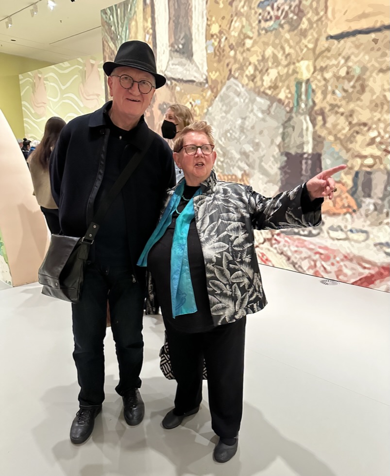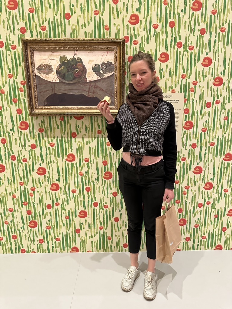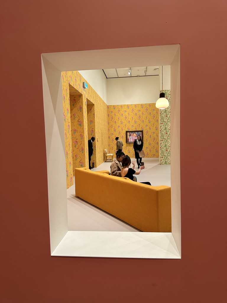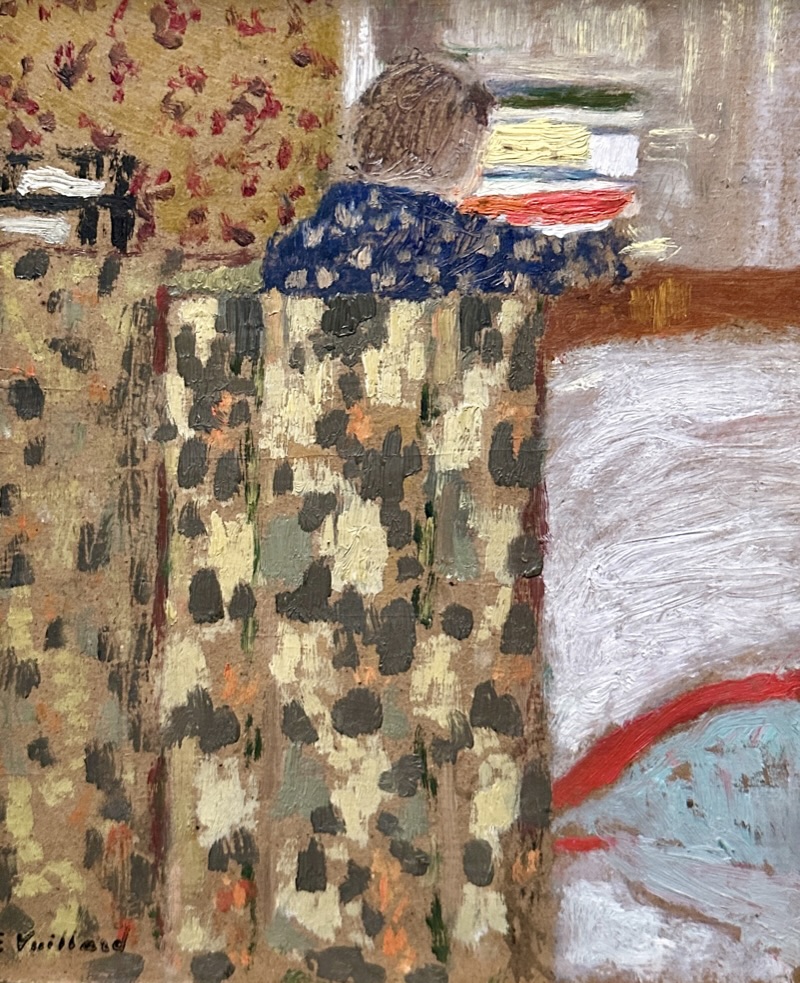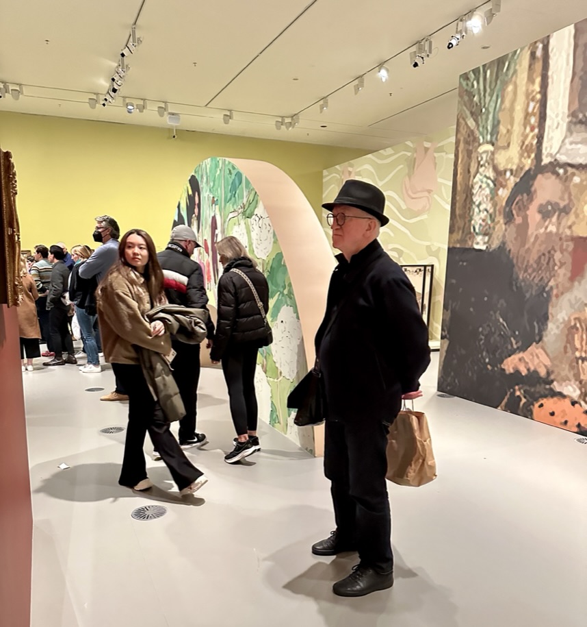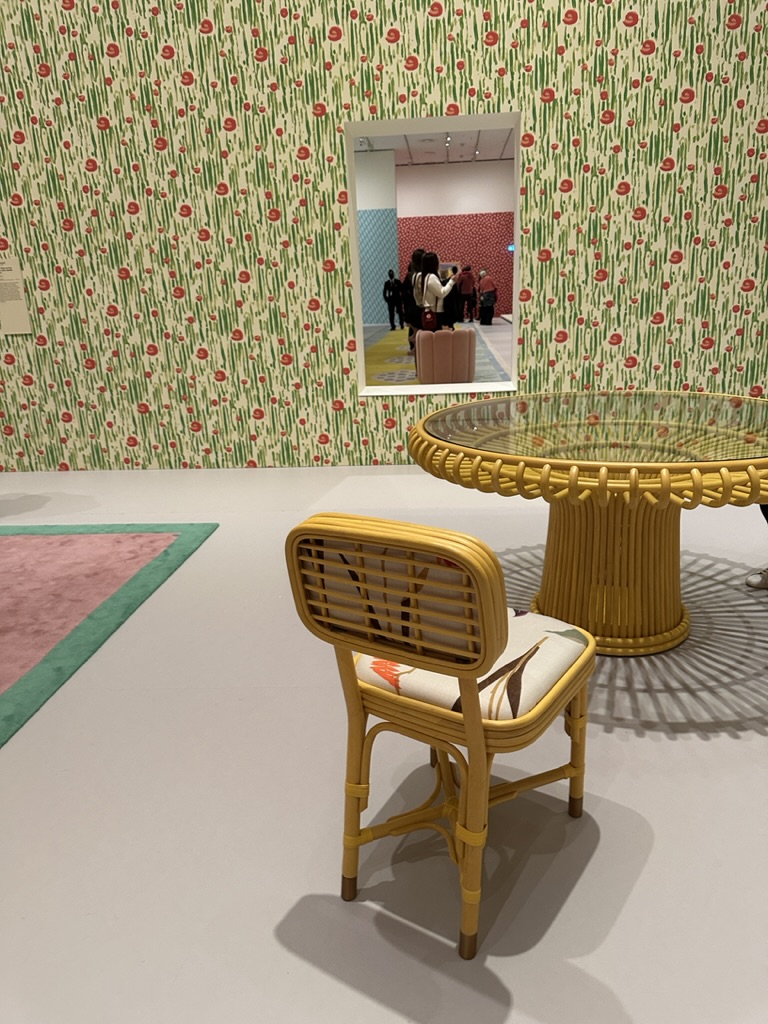 Paris-based architect and designer India Mahdavi, a ‘virtuoso of colour’ and winner of Designer of the Year at the 2023 Wallpaper Design Awards, showcases Pierre Bonnard’s works in an innovative environment that complements his use of colour and texture to create a feeling of domesticity. Eventually reaching Le Cannet we entered Bonnard’s private life and landscapes in the bright colours reflected in the wallpapers reproduced by Mahdavi. Amongst our group there were mixed reactions to India’s scenography- some found it a bit overwhelming, whereas others loved the wallpapers, checking the paintings to find some of the reproductions as well as the touches of daily life with many pets, table settings, with apt furniture and carpets to reinforce this domestic atmosphere.