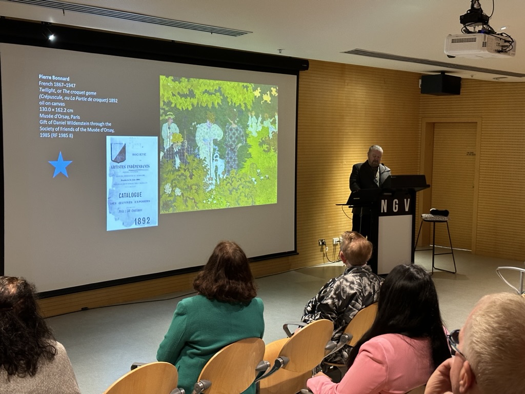 Dr Ted Gott, Senior Curator of International Art , (and resident Bonnard trivia expert!*), gave a most insightful and informative lecture in French accompanied by appropriate slides, many of these forming part of the exhibition- It was like meeting old friends when we entered the exhibition as Ted’s slides had prepared us well for many of Bonnard’s earlier works.